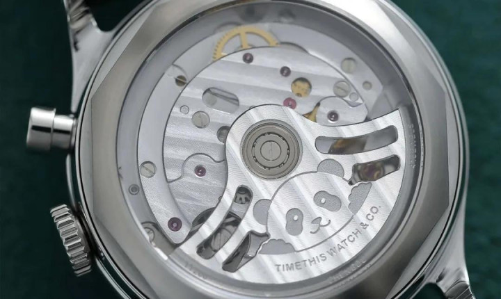 能作念成这么,也多亏了它的机芯,30分钟积分和12小时积时功能的布局在3-9点中线偏上,小秒针在6点位,合乎熊猫脸五官布局。而况这枚机芯真的相等棒,固然3/4夹板挡住了它的里面结构,但其实除了简配了特佛龙涂层的换向轮、少了阿谁花瓣状计时秒轮,轮系和计时结构与4130简直一模相同。另外,自动上链结构也被简化了,但这皆不影响它的优秀,就像流荡民间的阿哥,固然莫得华衣好意思食,血缘如故贞洁的!