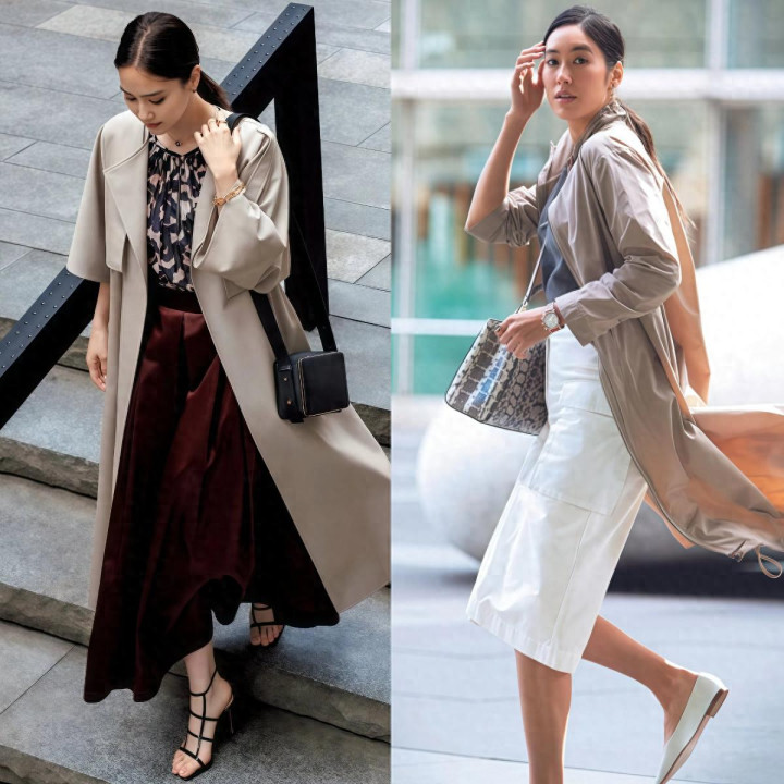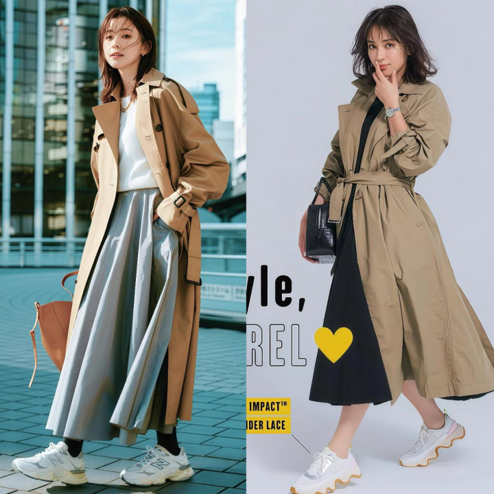 <三> 选对鞋子和配饰,“风衣+裙子”的完成度径直翻倍 Point①. 字据穿衣作风,来袭取稳健我方的“鞋子” 鞋子选错了风衣配长裙这套搭配径直废掉,别不信,同零丁风衣长裙换一对不同的鞋,穿出来成果差距独特大,是以脚上这双鞋值得花技术崇敬去选。 ① 配畅通鞋:走温顺门道,减龄还酣畅 想走闲静减龄门道的东谈主,脚上径直踩一对白色畅通鞋,百搭宽心,衣着也酣畅,逛街出游走路多的场所穿独特合适,风衣长裙搭上畅通鞋整套穿搭看着清亮减龄,平常出街很实用。