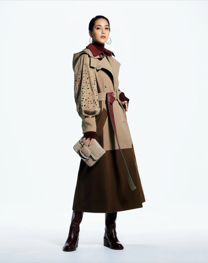 NO.2 配色一深一浅,径直凸起拉开档次 ✓ 驼色风衣+浅蓝裙摆,浅深有序不只调 同色系穿腻了,不错试试一深一浅的配色,驼色风衣搭一条浅蓝色长裙,浅深拉开了,对比但举座融合不冲突,全身堆地面色,容易显得暮气千里闷,加了一抹蓝色,统共这个词搭配的气质就会变得澈底不一样。