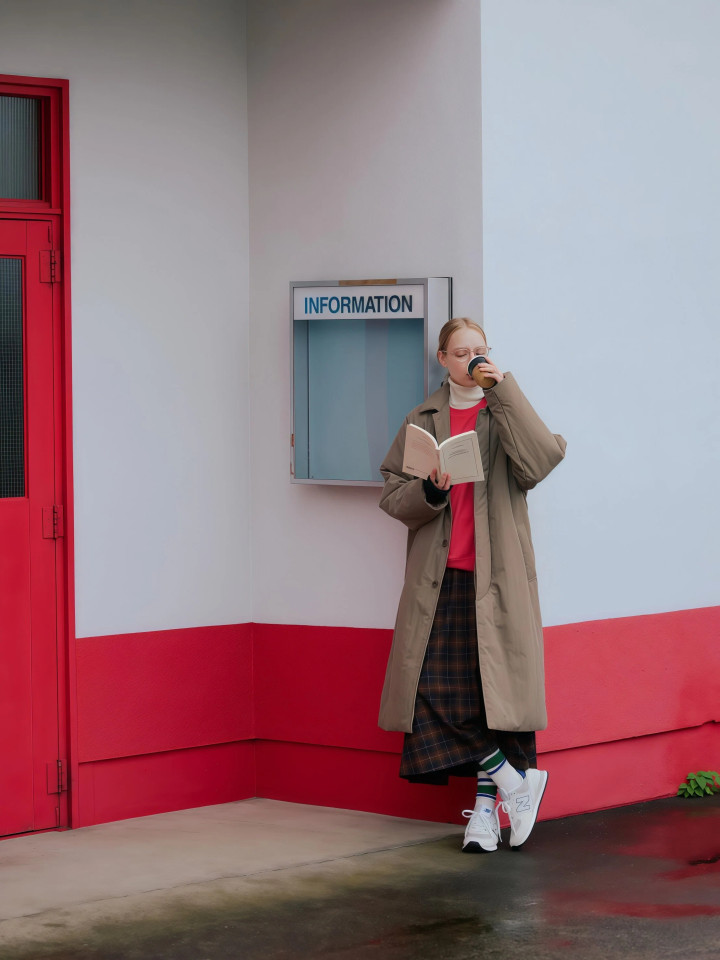 ★从领口透出彩色内搭,提气色又有档次 还有一招更省事的,风衣内部穿一件颜料显着的内搭,红色卫衣或者彩色高领真挚都不错,从领口和下摆走漏一截颜料来,不必异常买配饰,光靠内搭的颜料,就能让整套搭配鲜美起来,提气色的成果也很彰着。 比如一件红色圆领卫衣塞进格纹长裙里,外面再罩一件卡其色风衣,三个颜料搭在一都并不乱,红色在中间作念亮点,把卡其和格纹的千里稳全部带活了,暗色打底加一个亮色中心这个配色念念路不错记取。